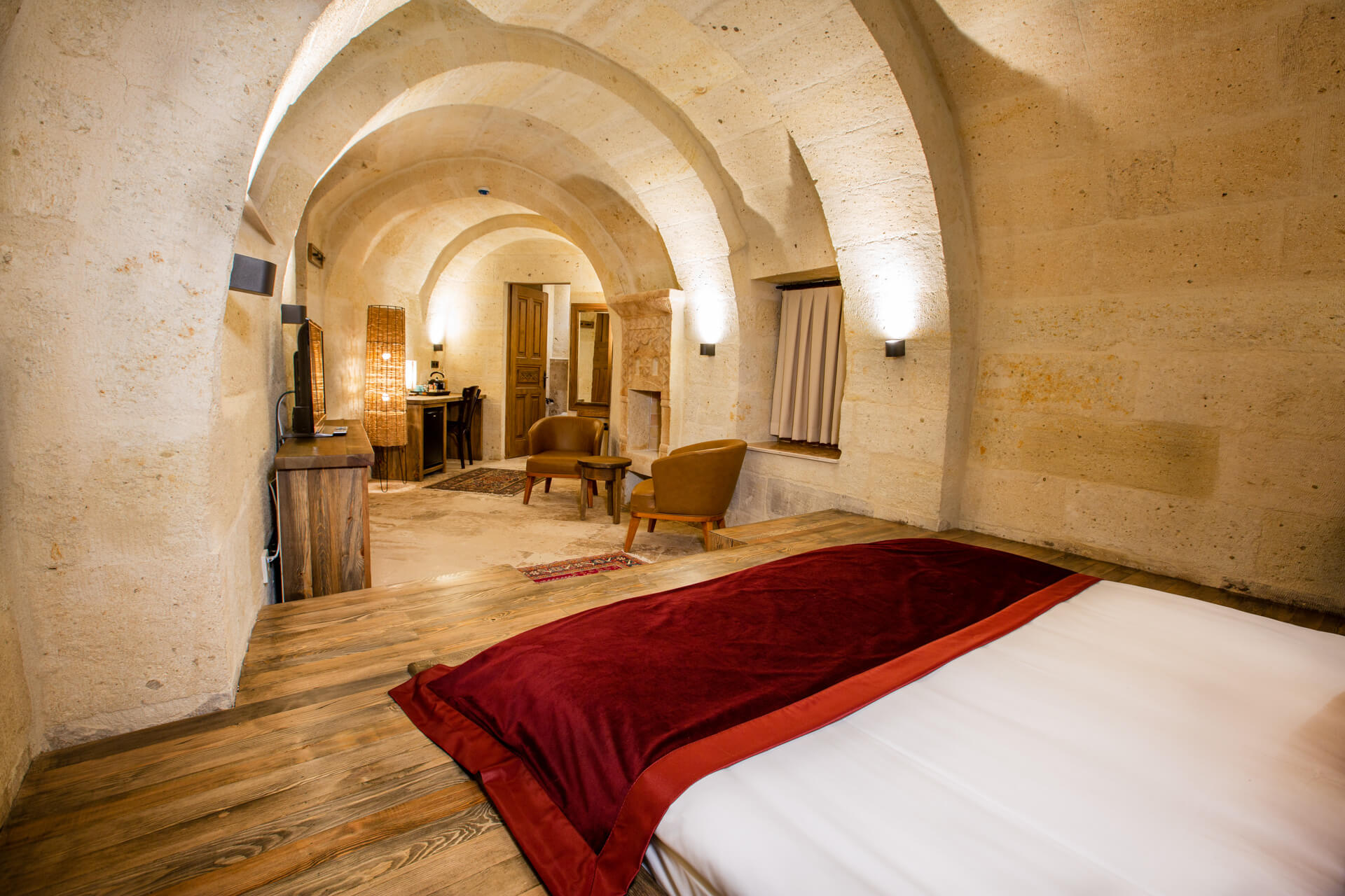 “Sedirli Oda” is a comfortable room with a fireplace and a king size floor bed.